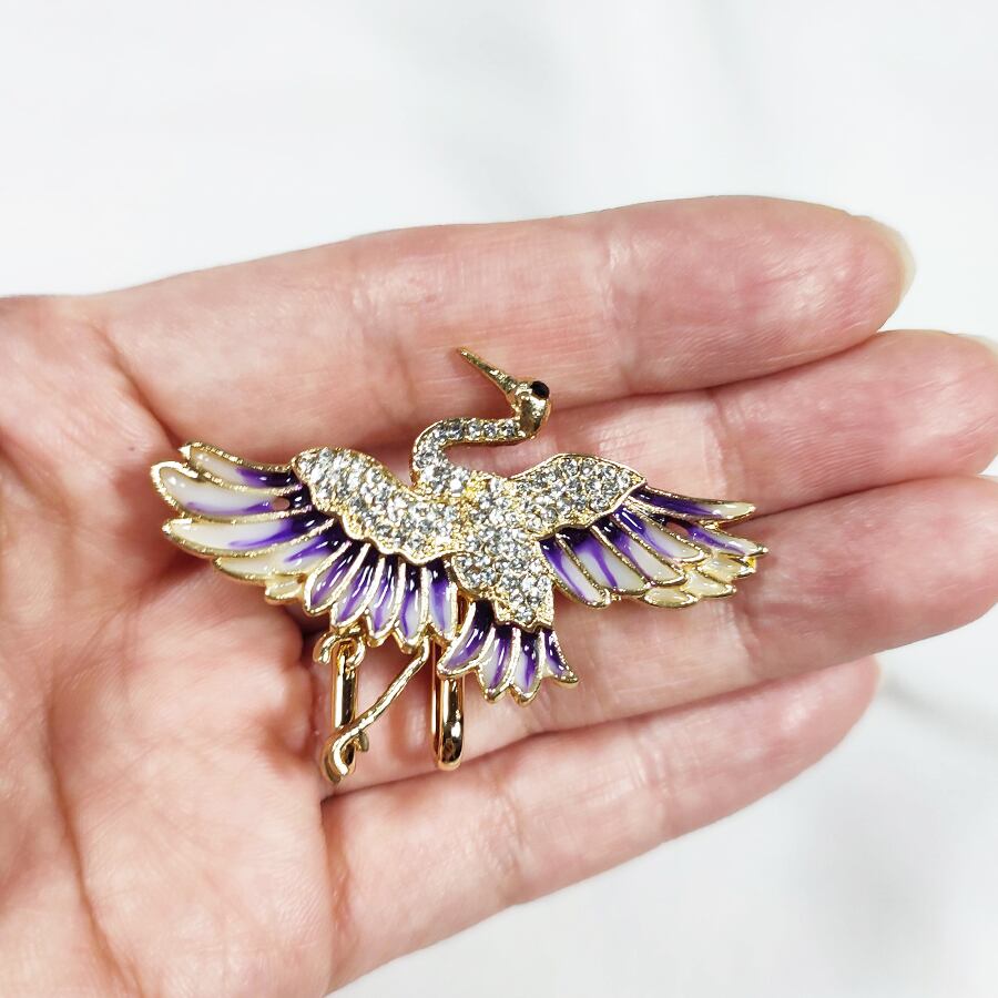 キラキラのラインストーンが付いた、鶴の帯留め飾りです。