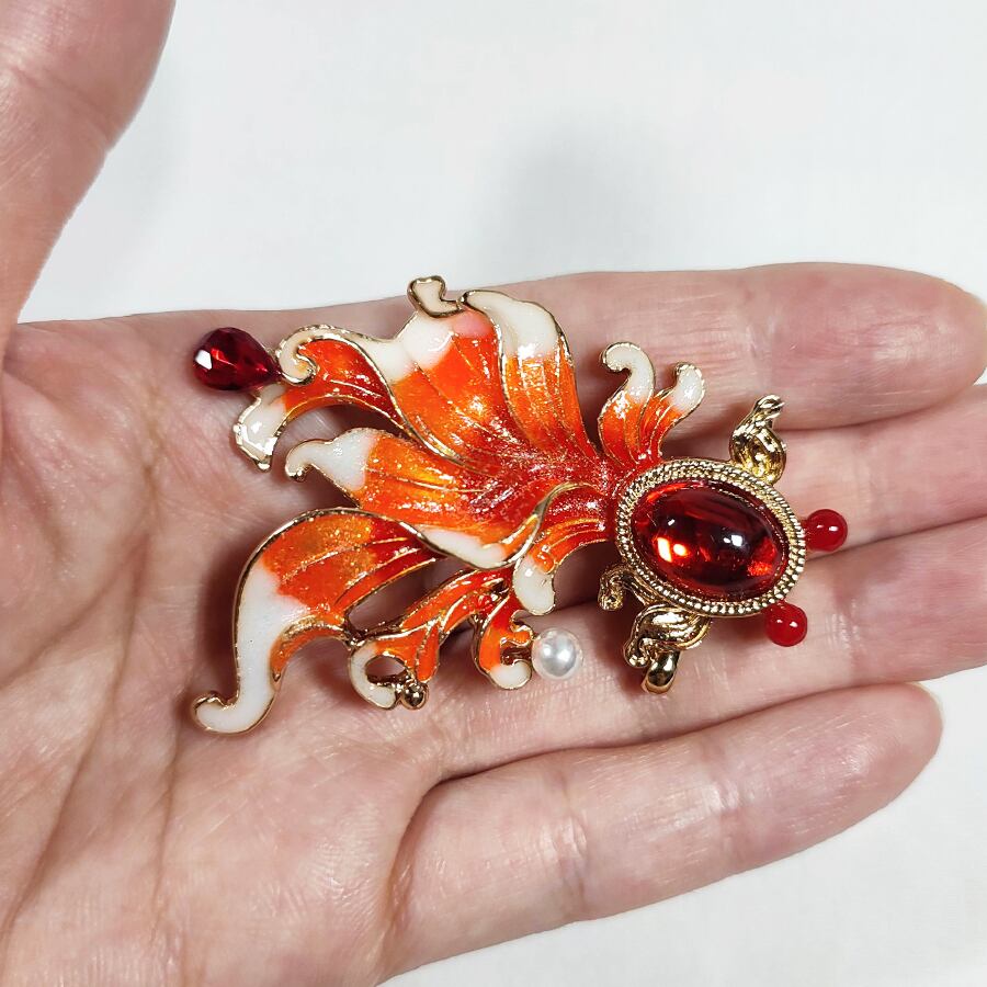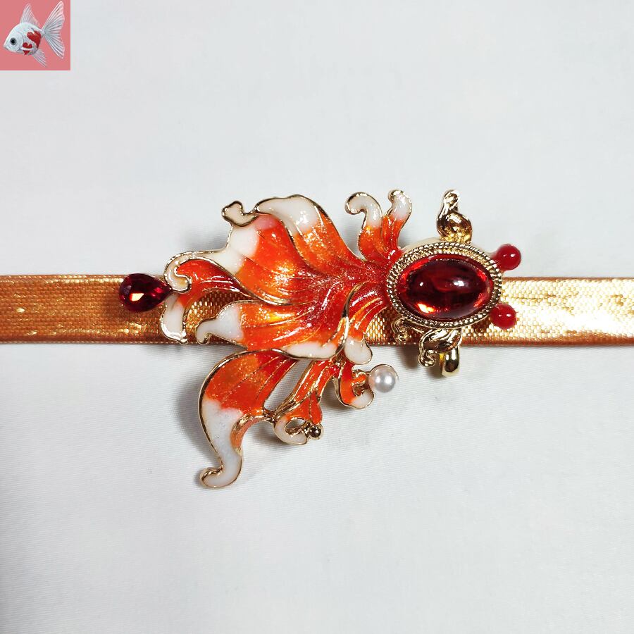 オレンジ色のおしゃれな金魚の帯留め飾りです。