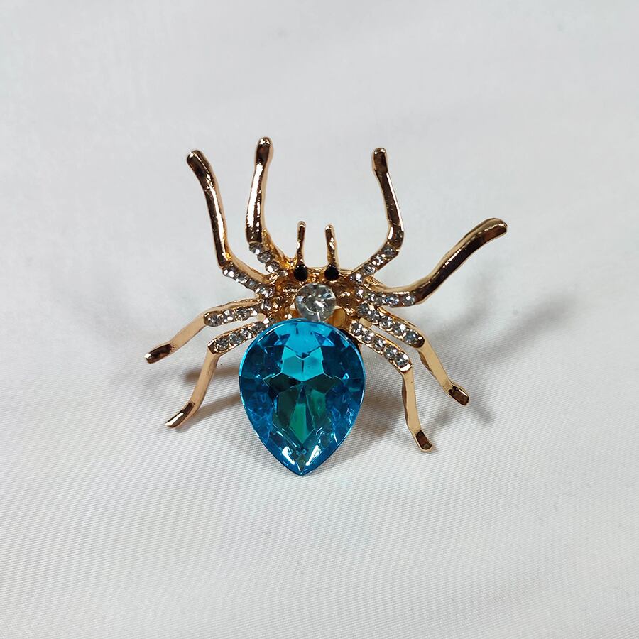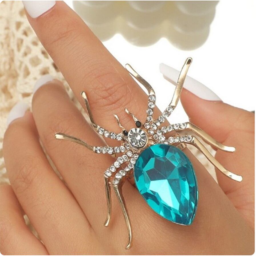 水色ボディとキラキラの足が素敵なクモのリングです。