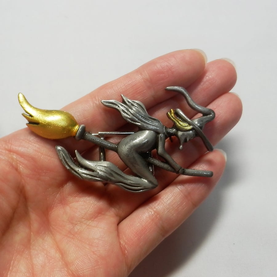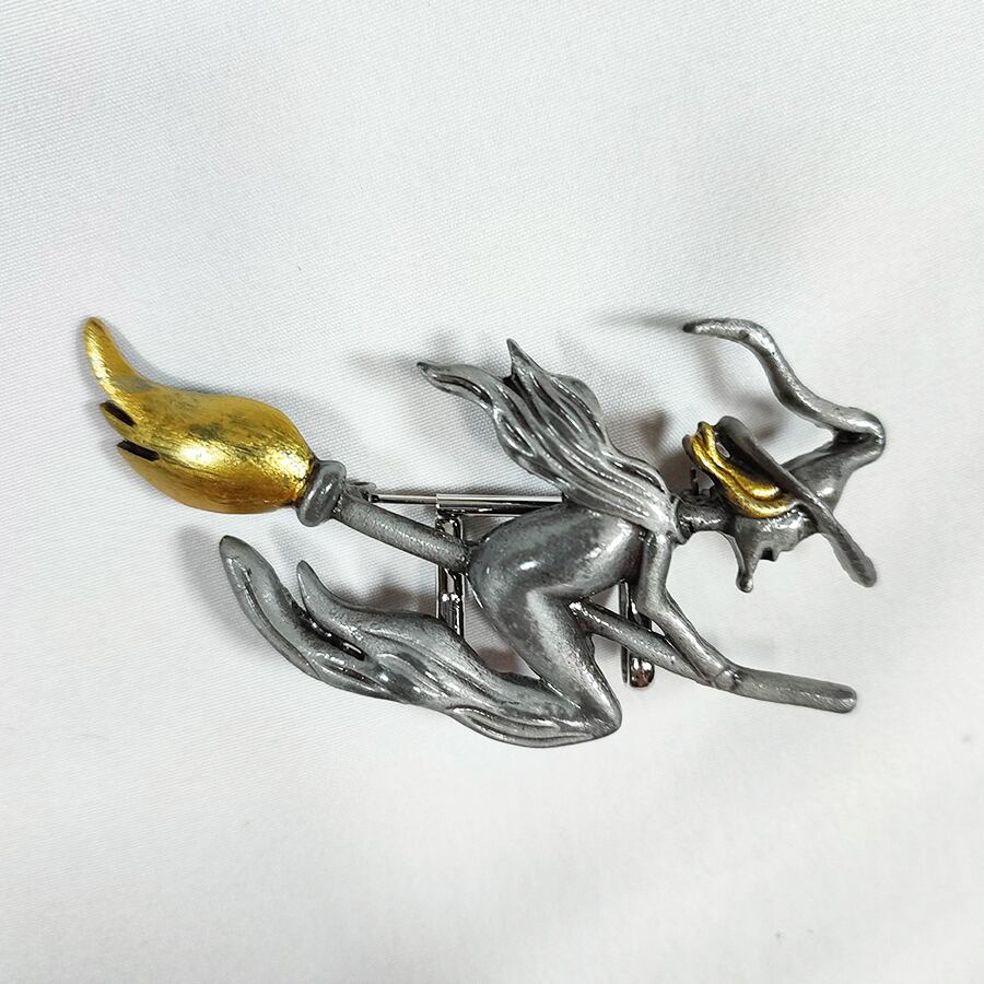 ほうきに乗った魔女の帯留め飾りです。