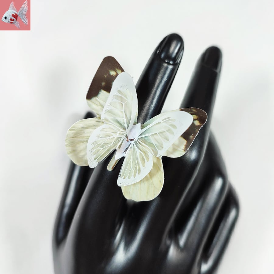 立体的な羽が素敵な、蝶のリングです。