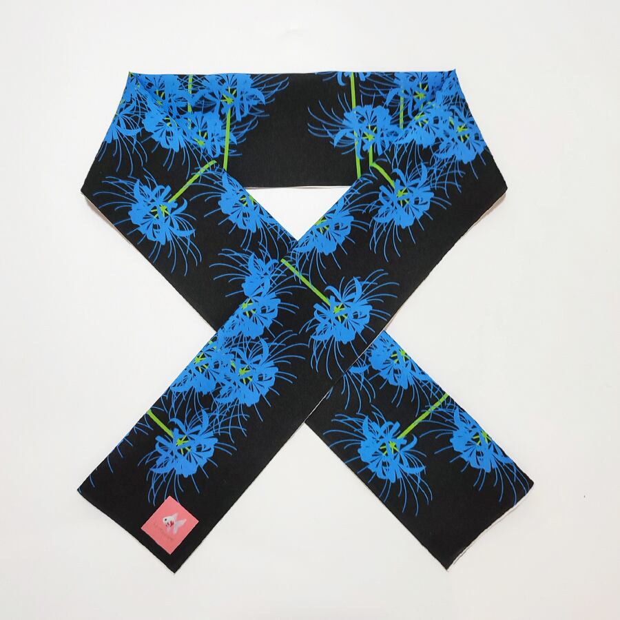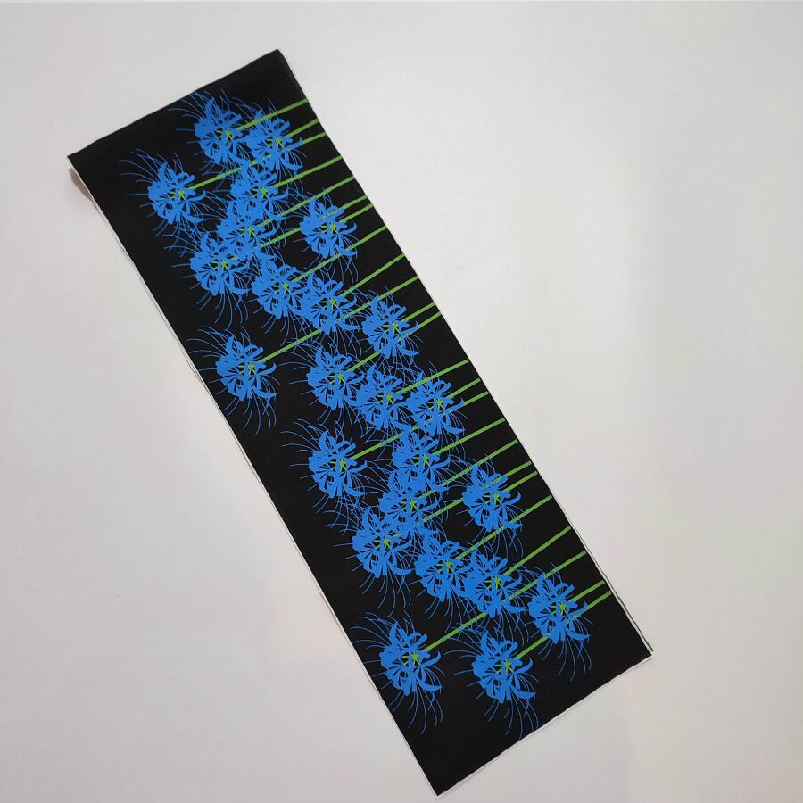 黒地に青の彼岸花の素敵な半襟です。