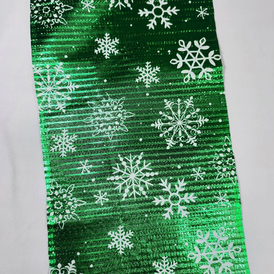 メタリックな緑に白い雪の結晶柄が素敵です。