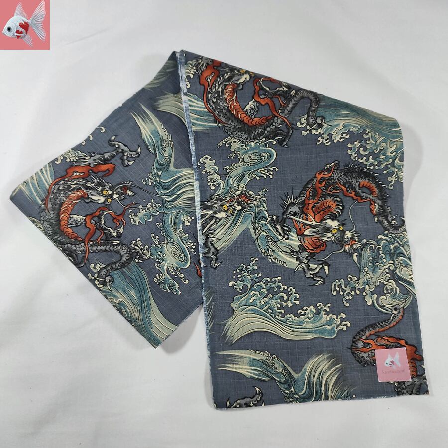 グレー地にワイルドな龍と波の柄が素敵です。