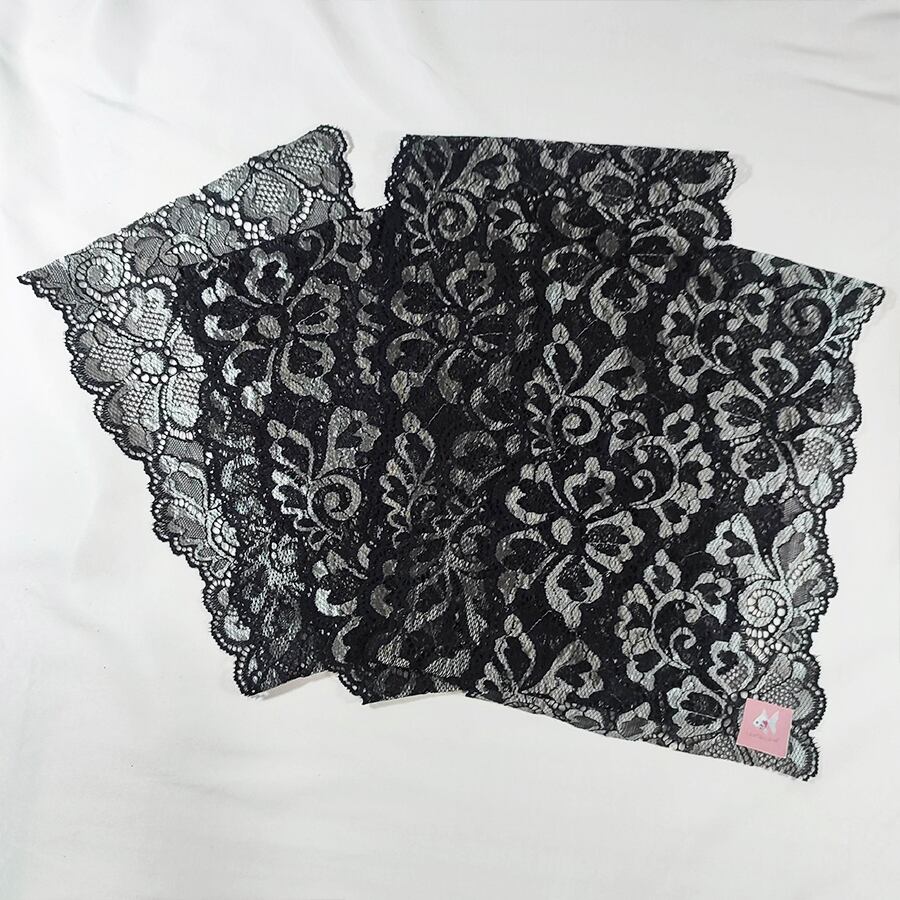 エレガントな黒とグレーのフラワーレースの帯揚げです。