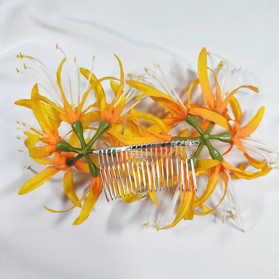 ヘッドドレス フラワー Spider lily 髪飾り ヒガンバナ 山吹色
