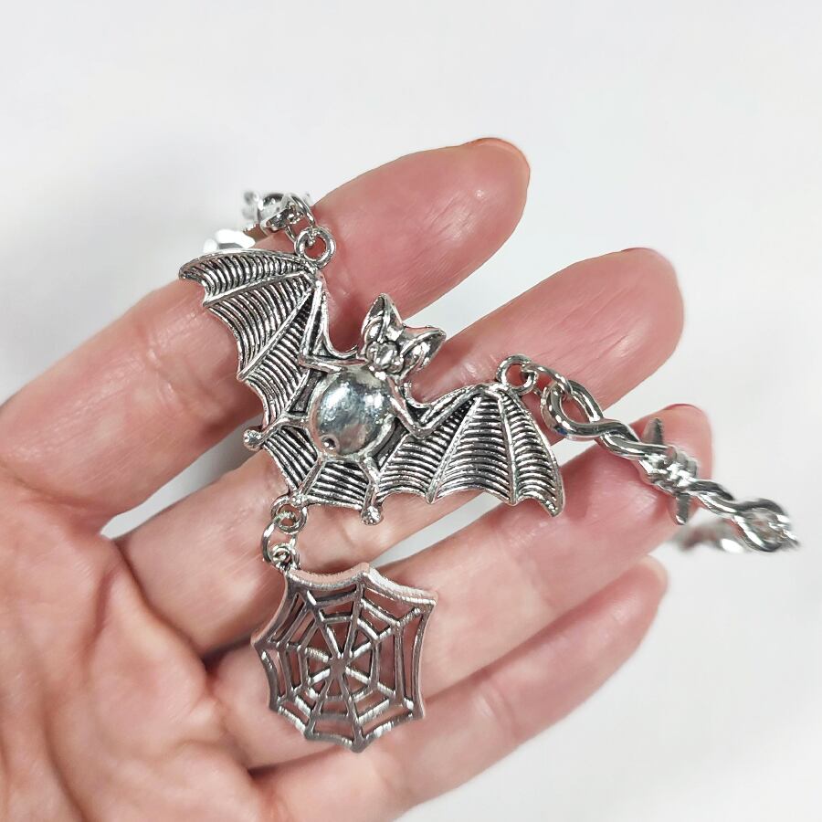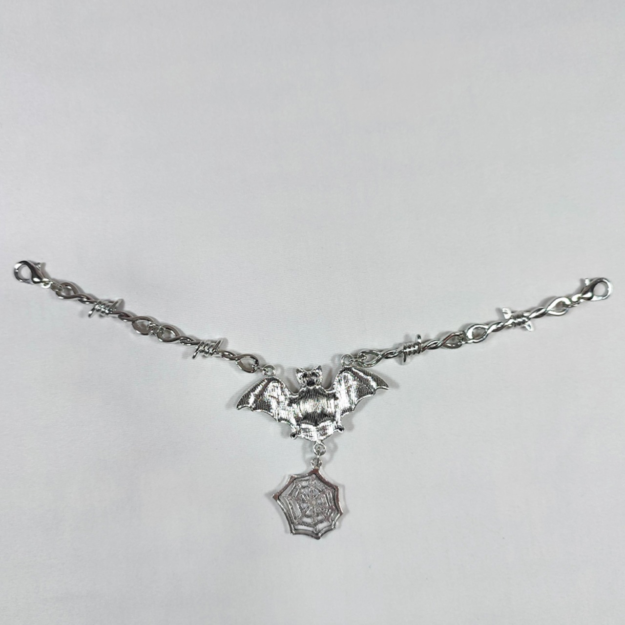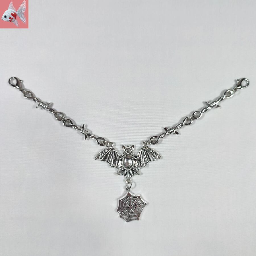 有刺鉄線のチェーンや蜘蛛の巣のチャームも付いて可愛いです。