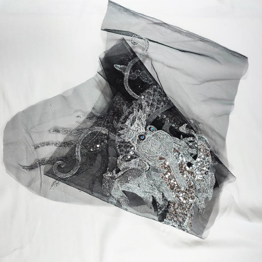 キラキラスパンコールと刺繍の龍の帯飾りです。