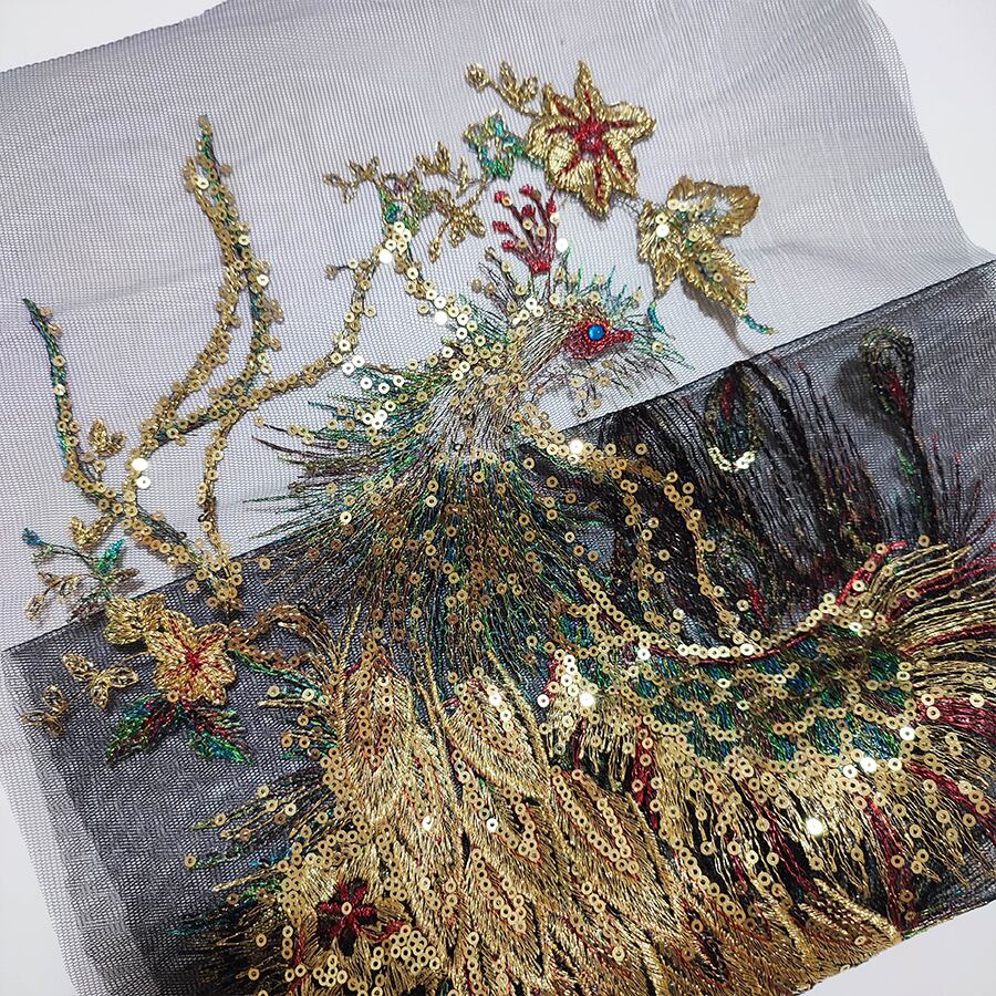 ベースは黒のチュール生地で、刺繍とスパンコールが華やかです。