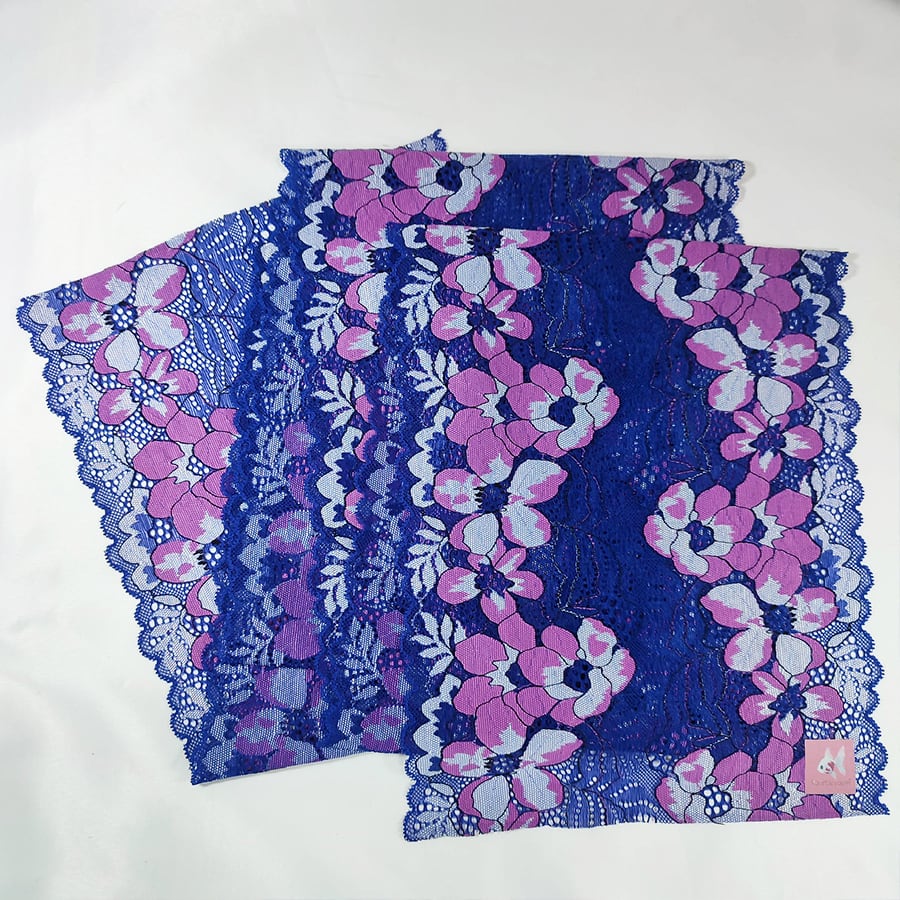 青地に紫色の少しレトロな花柄が素敵です。