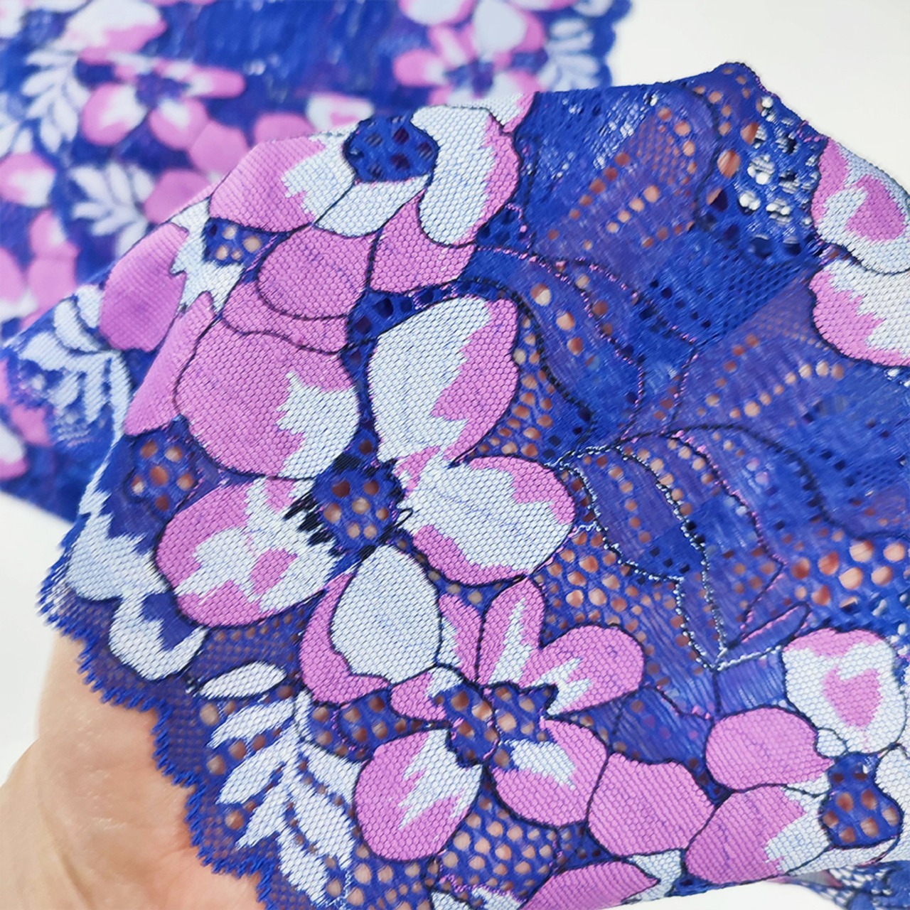 帯あげ 花柄 着物 和装小物 ブルー パープル ロング 長尺