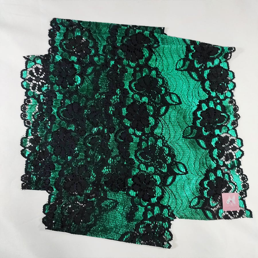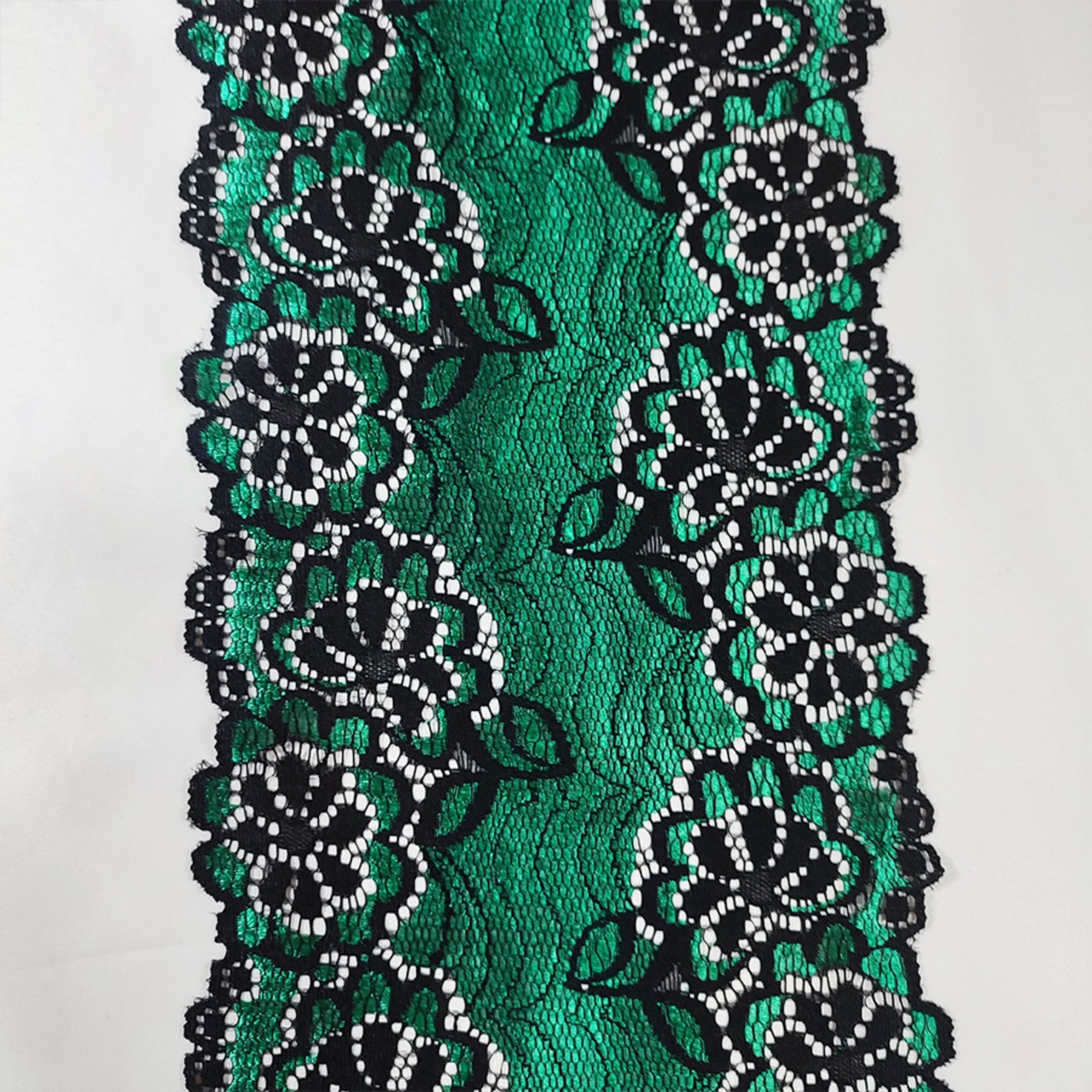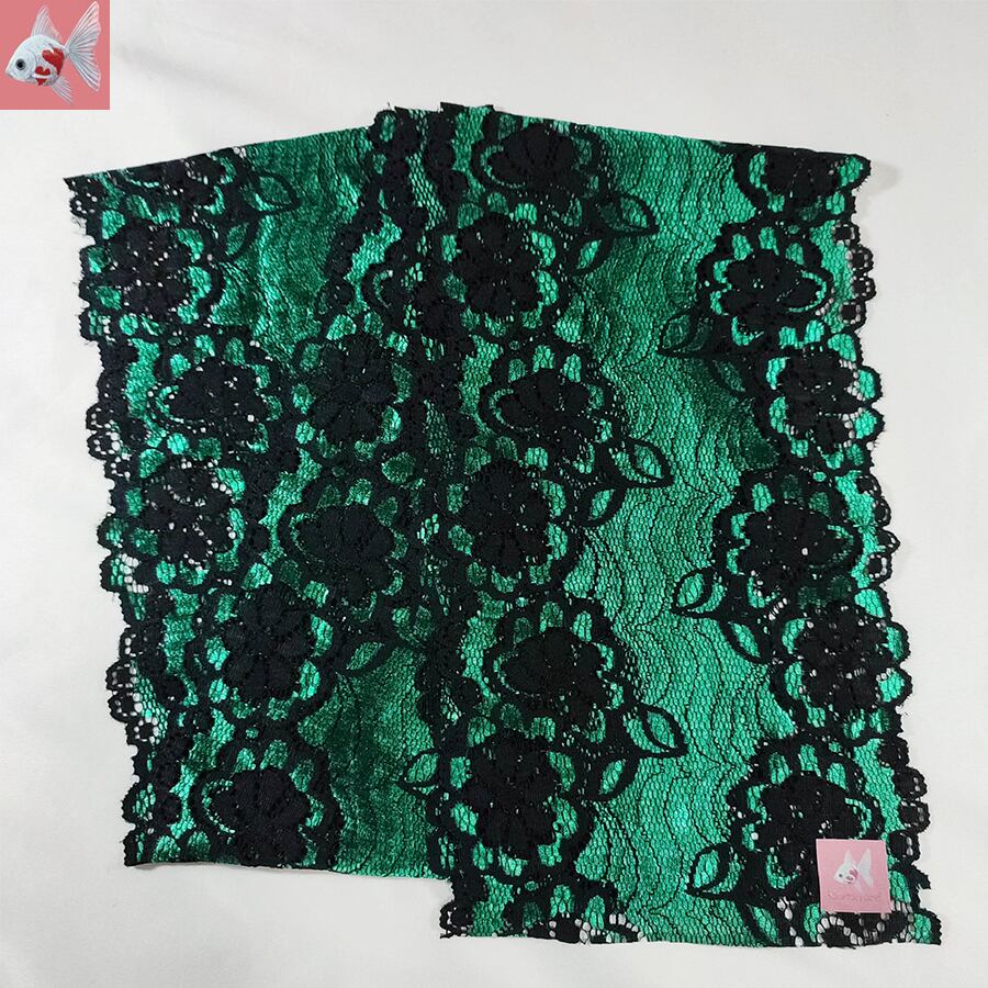 エレガントな黒と緑のフラワーレースの帯揚げです。