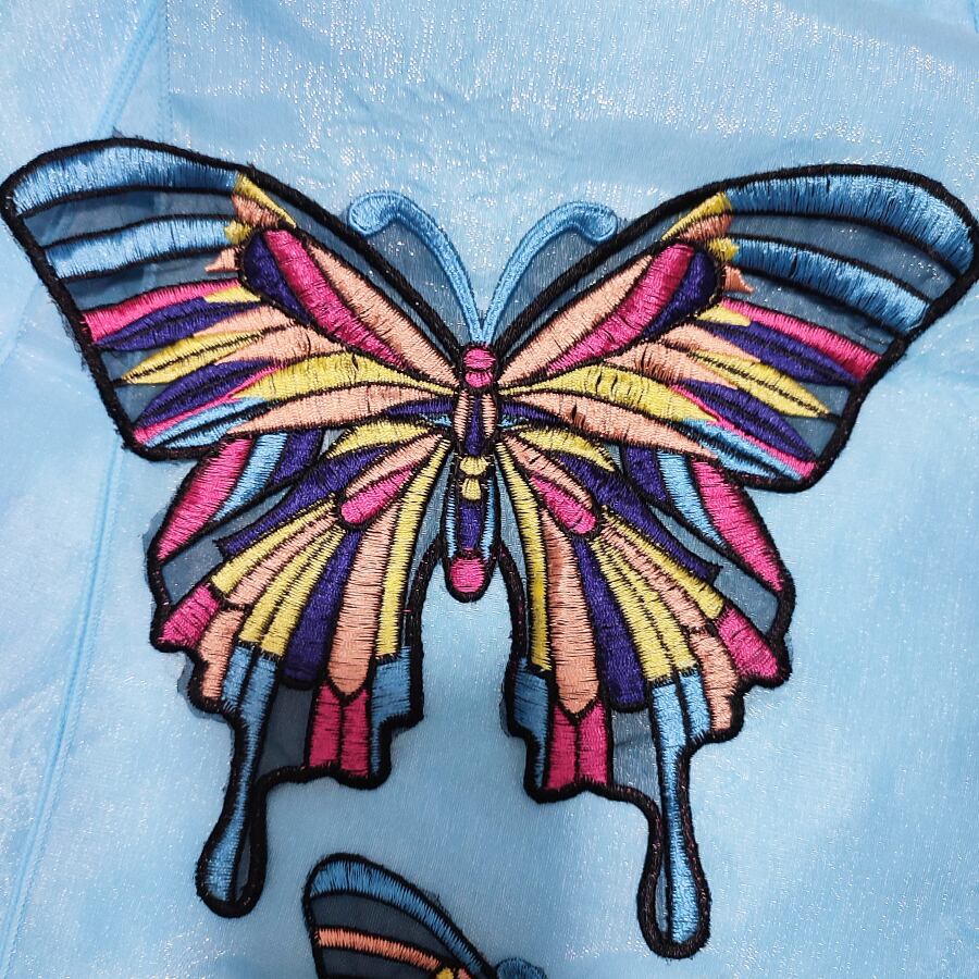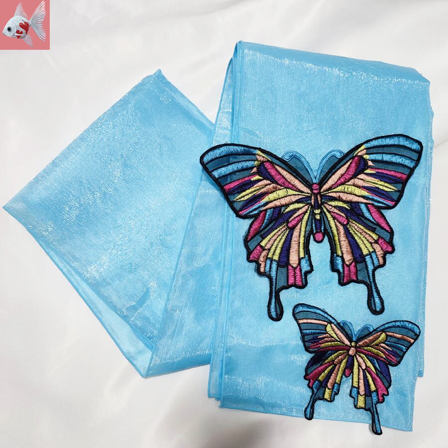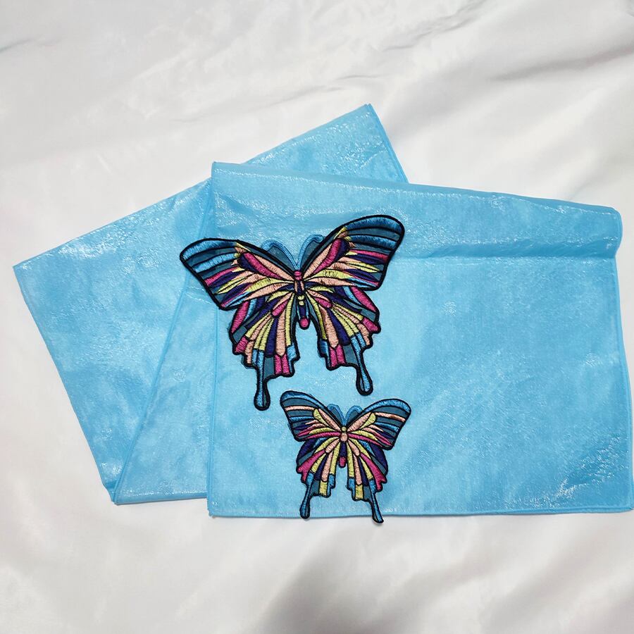 水色の兵児帯に、刺繍で出来た2匹の蝶が付いています。
