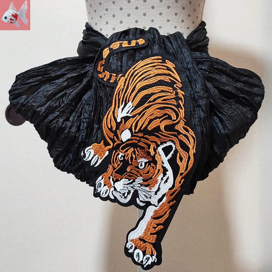 黒の兵児帯に、刺繍で出来たカッコいい虎が付いています。