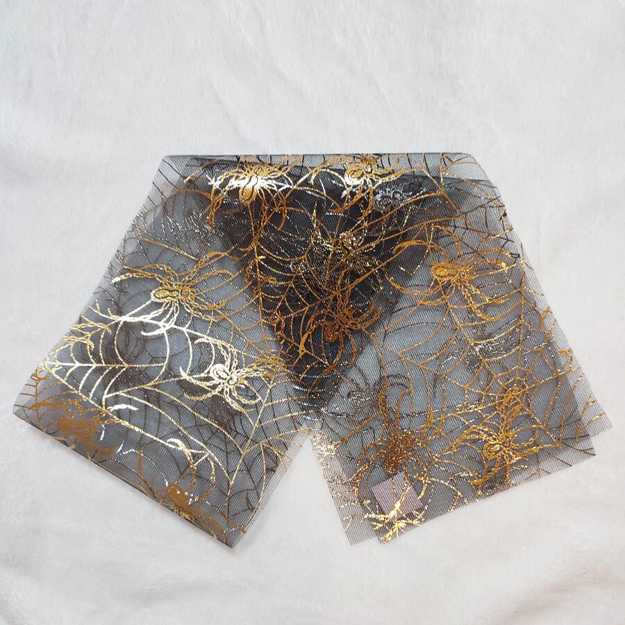黒のオーガンジー生地にメタリックゴールドの柄が綺麗です。