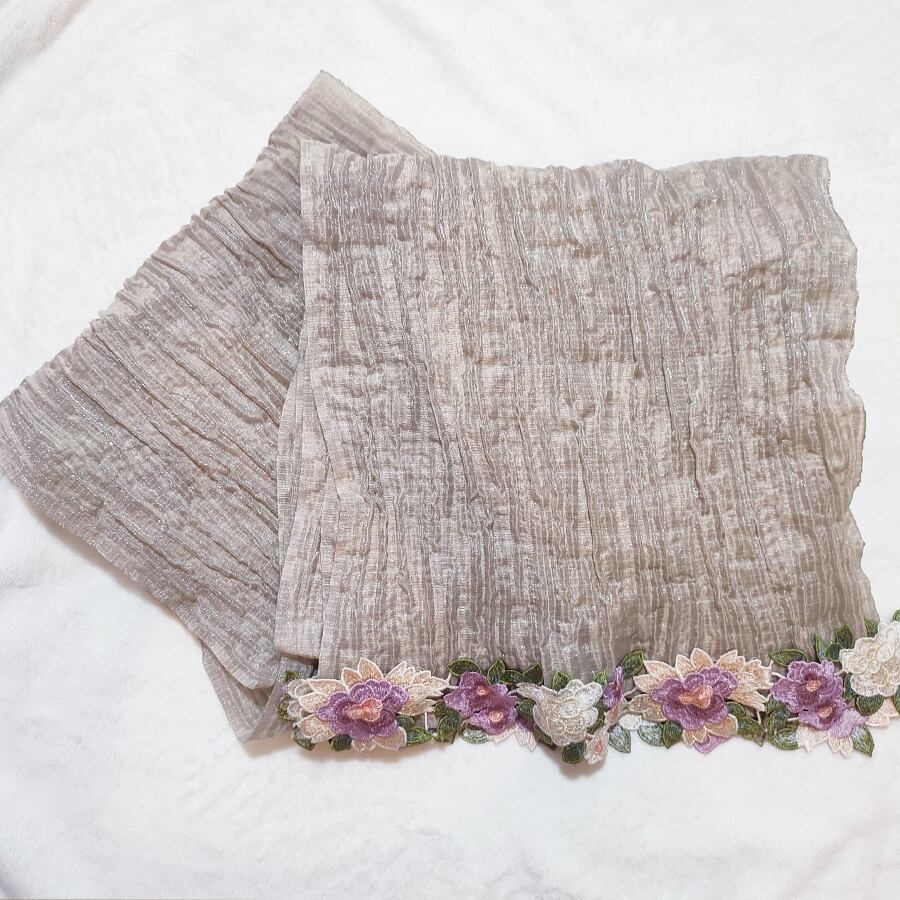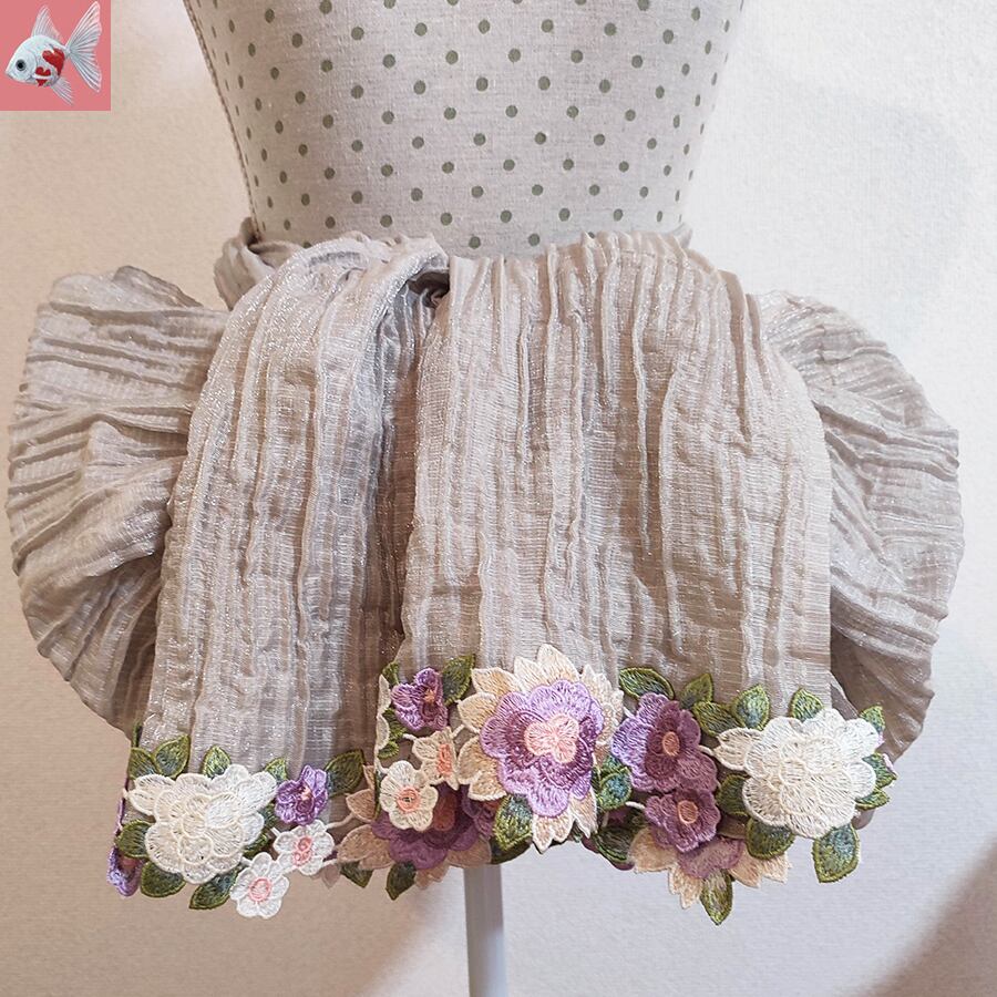 ◆花刺繍のしわ兵児帯① ベージュ