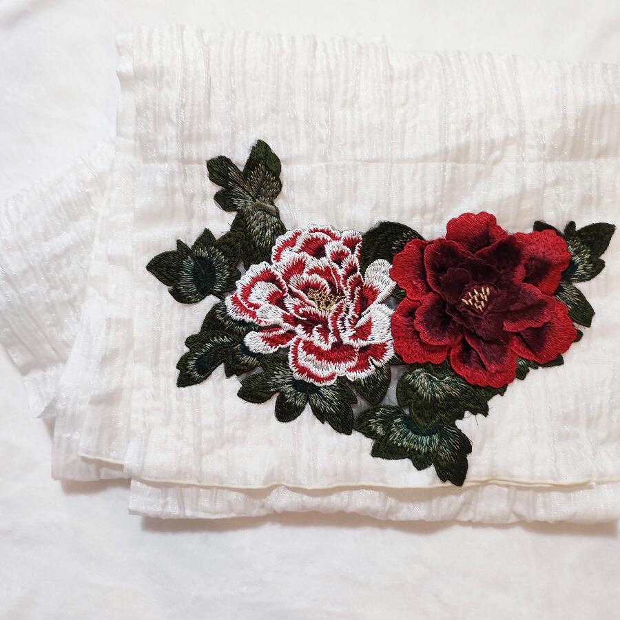 オフホワイトの兵児帯に、刺繍で出来た美しい花刺繍が付いています。