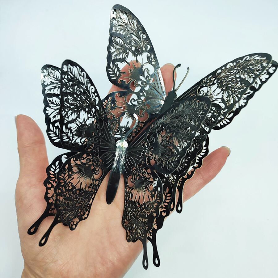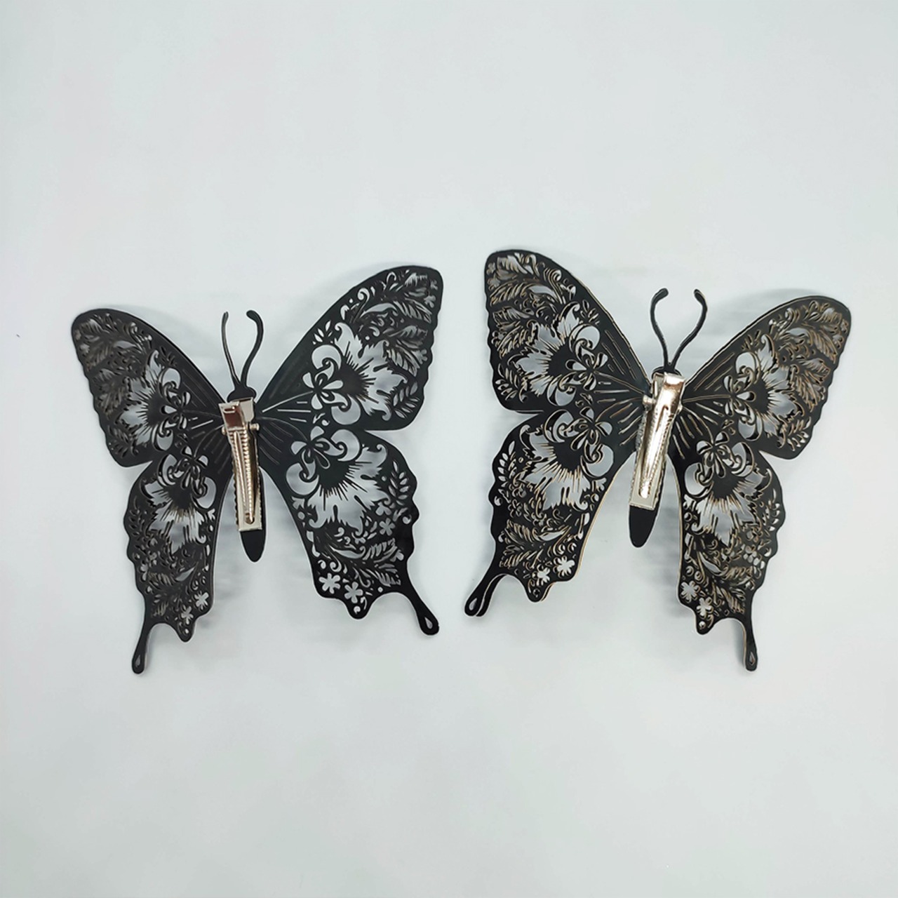 立体的な羽が素敵な、切り絵のようなカットの蝶のヘアクリップです。