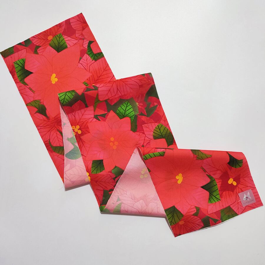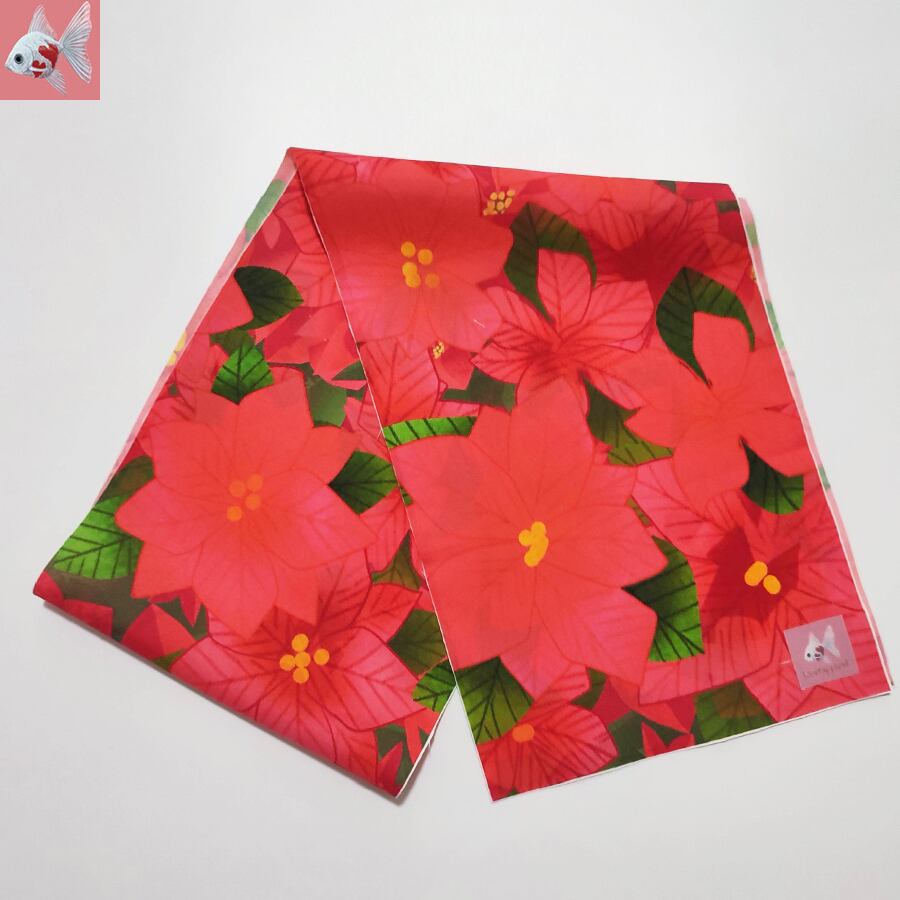 赤いポインセチア柄の素敵な半襟です。