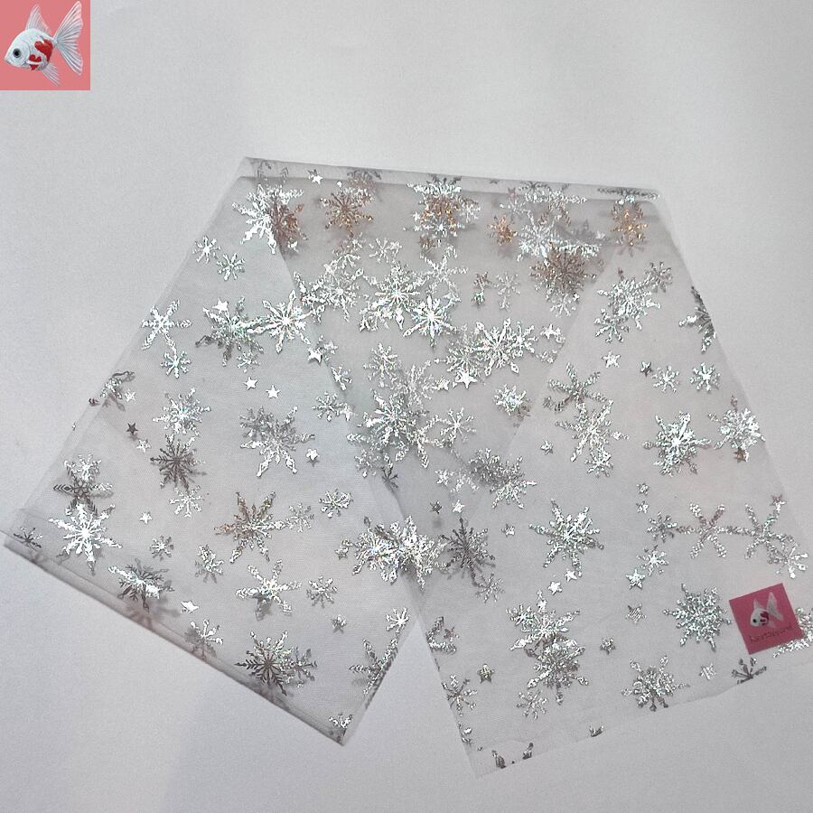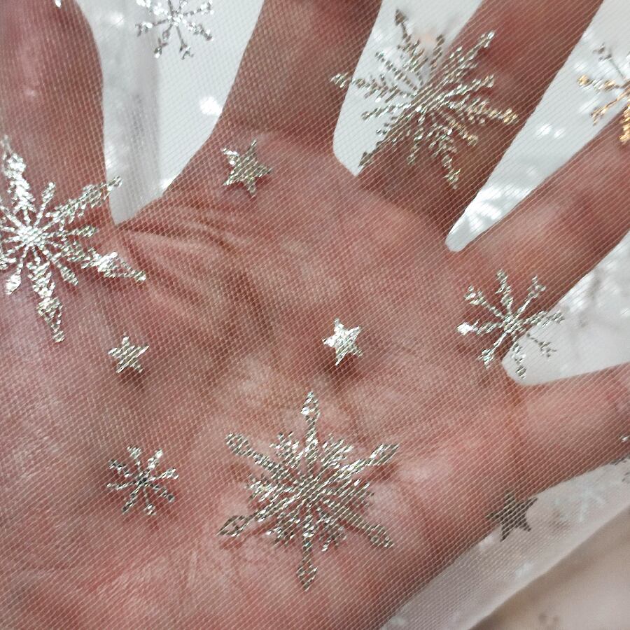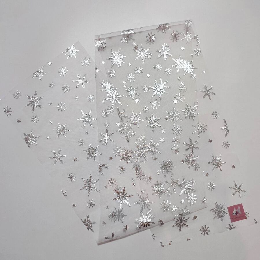 透ける白のチュール生地に銀色の雪の結晶がキラキラ輝いて、とても綺麗です。