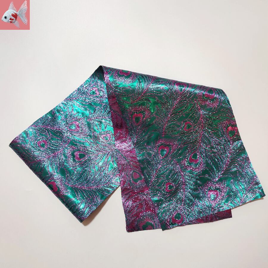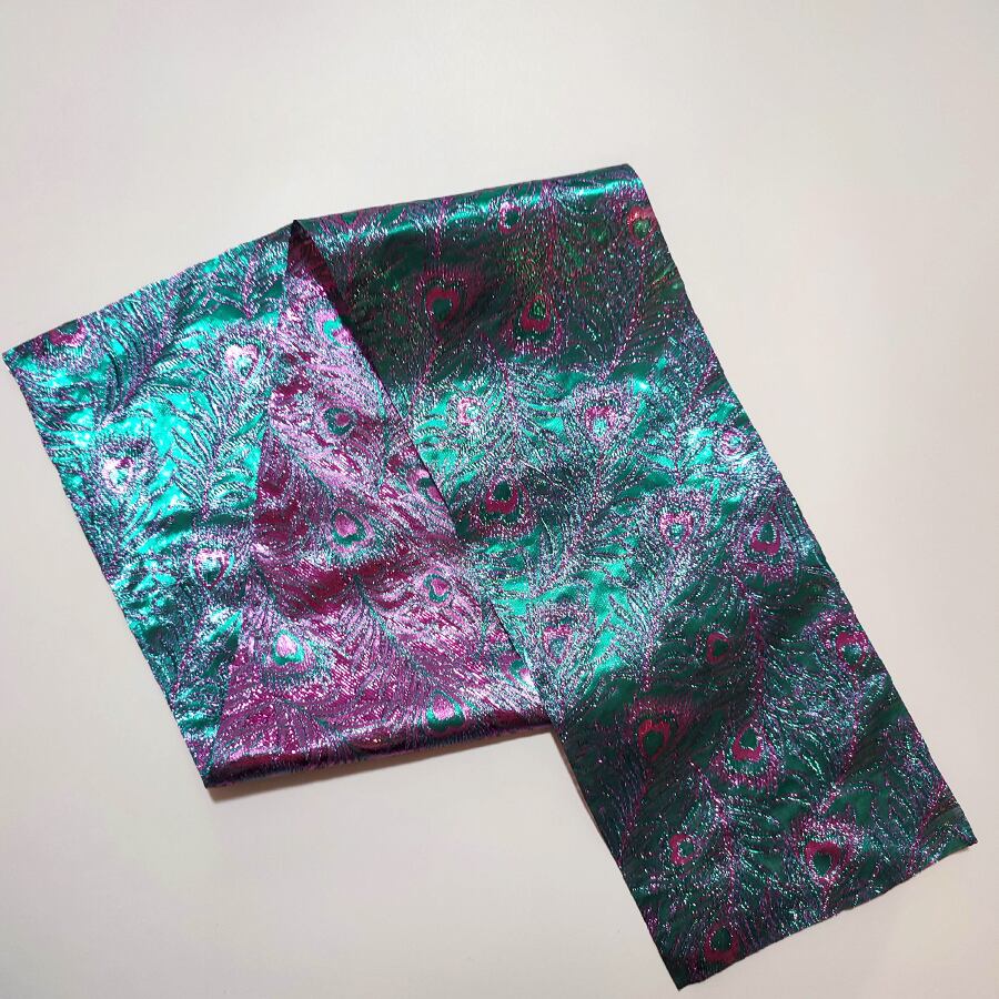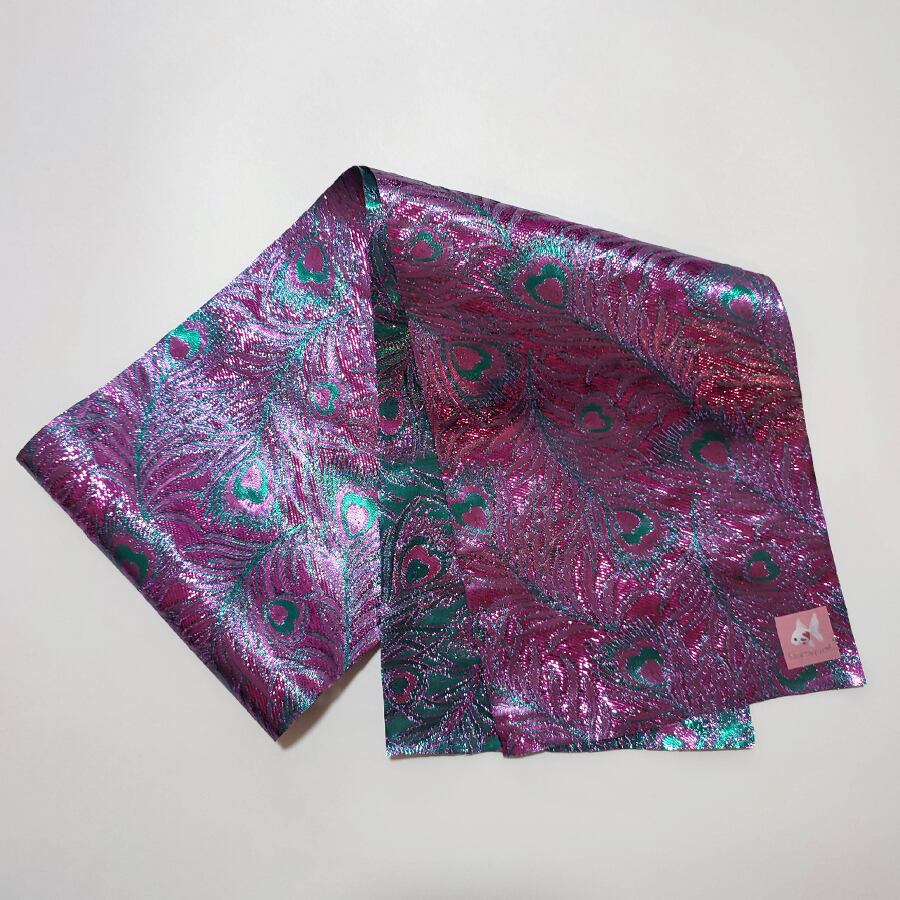 美しいメタリックなクジャクの羽根柄の半襟です。