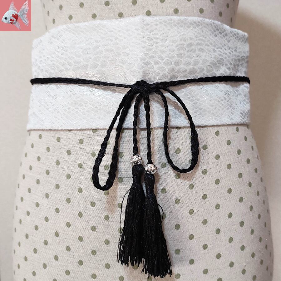 着物ベルト 蛇 パイソン 白蛇 ファブリックベルト 銀色