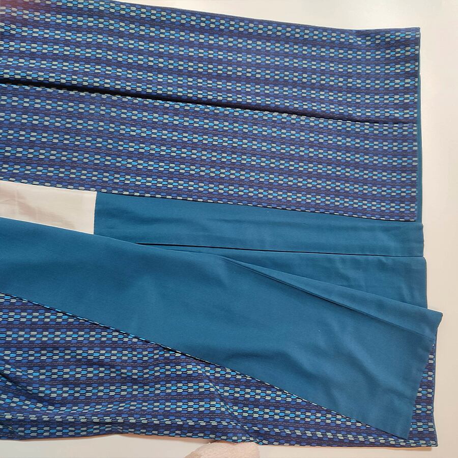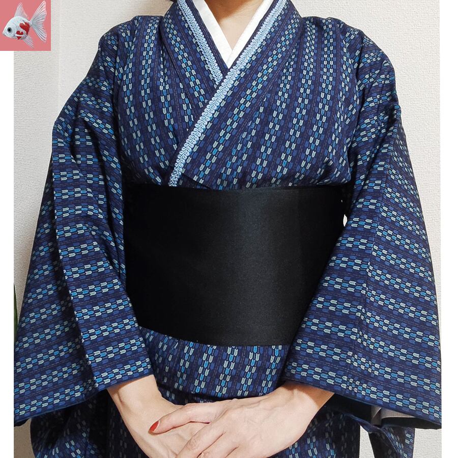 水色のブレードの襟飾りが付いた、袷のお着物です。