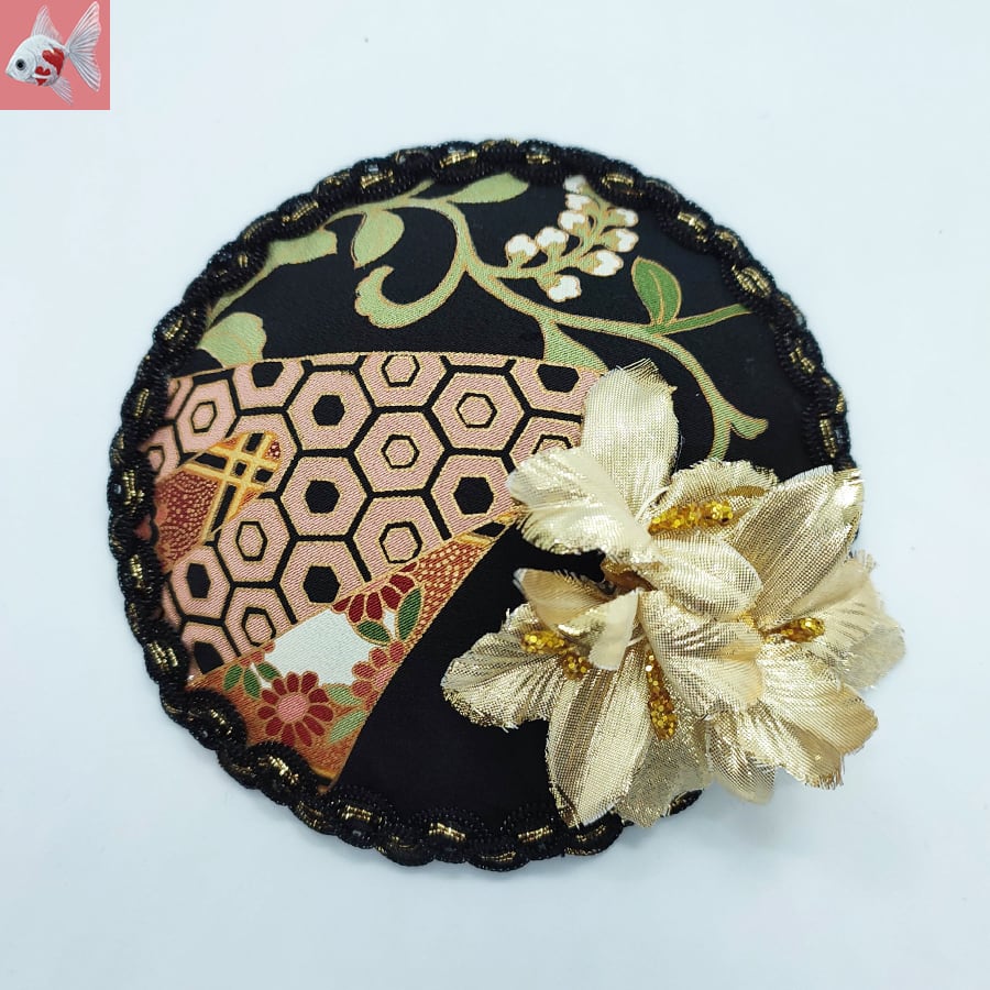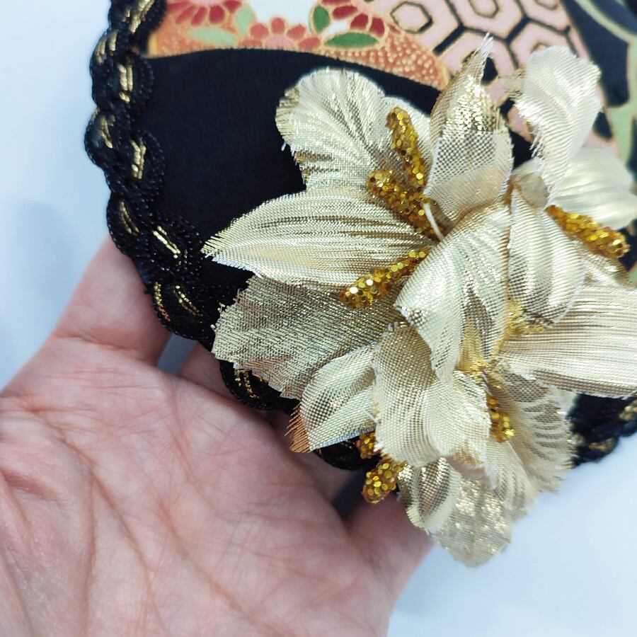 カッコいい和柄と金色のお花飾りが綺麗です。