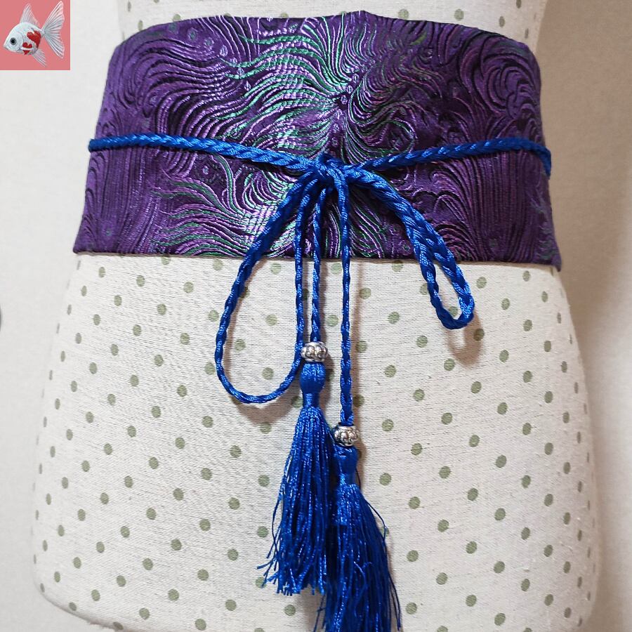 アウトレット◆クジャク柄の和装ベルト① パープル