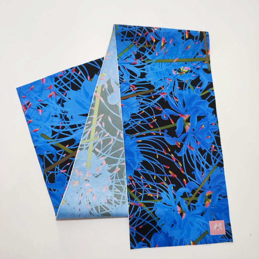 和装小物 着物 ブルー ブラック ヒガンバナ