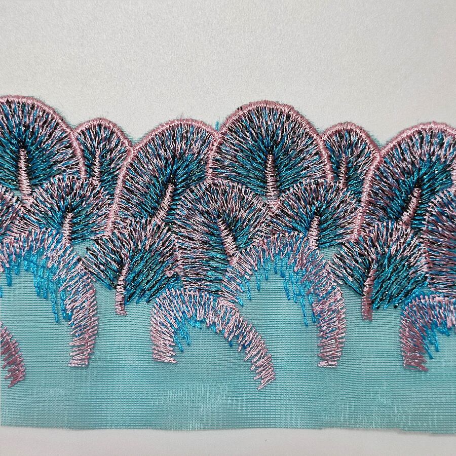 美しいクジャクの羽レースの半襟です。