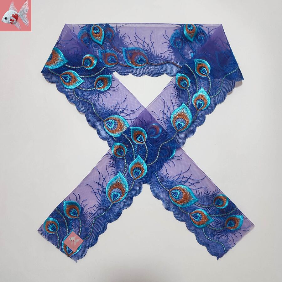 紫のオーガンジーにブルーの羽根の刺繍が綺麗です。